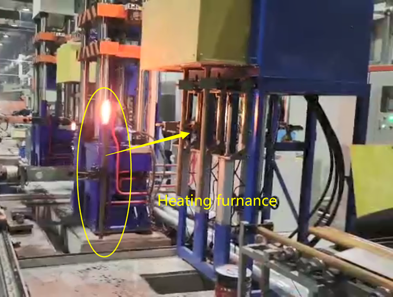 根据棒料直径的计算,选择合适的中频电源配频炉,炉体采用三工位,加料方式采用自动气缸推动机构 。